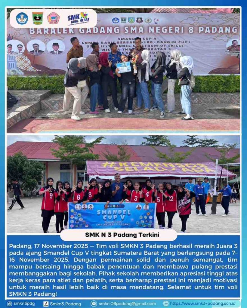Tim Voli SMK N 3 Padang Raih Juara 3 pada Smandel Cup V Tingkat Sumatera Barat